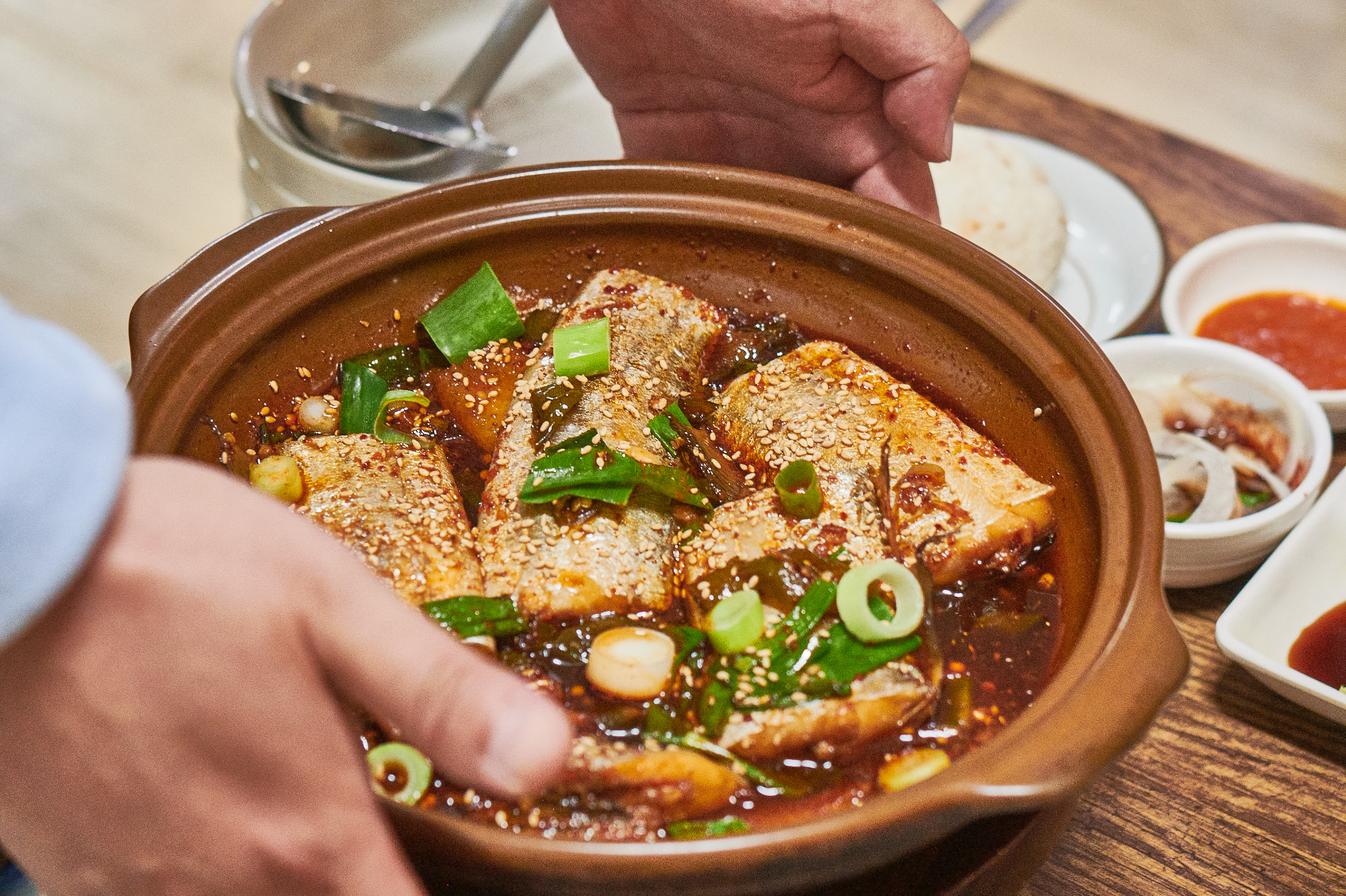 푸짐한 야채와 특제양념에 자박하게 조려낸 은빛 빛깔 갈치의 모습이 되게 인상적이었습니다.