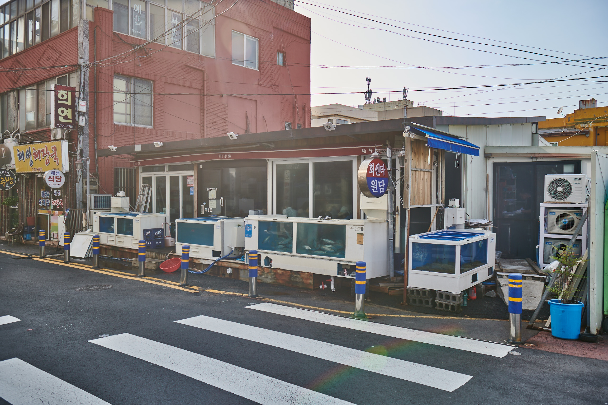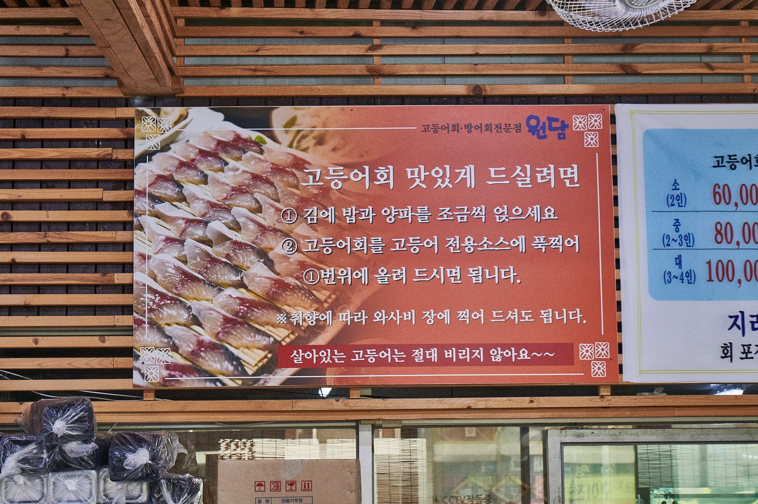 입구엔 여러 대의 수조가 놓여있는데 팔팔하게 떼를 지어서 다니는 고등어를 육안으로만 봐도 아주 싱싱하더라구요.