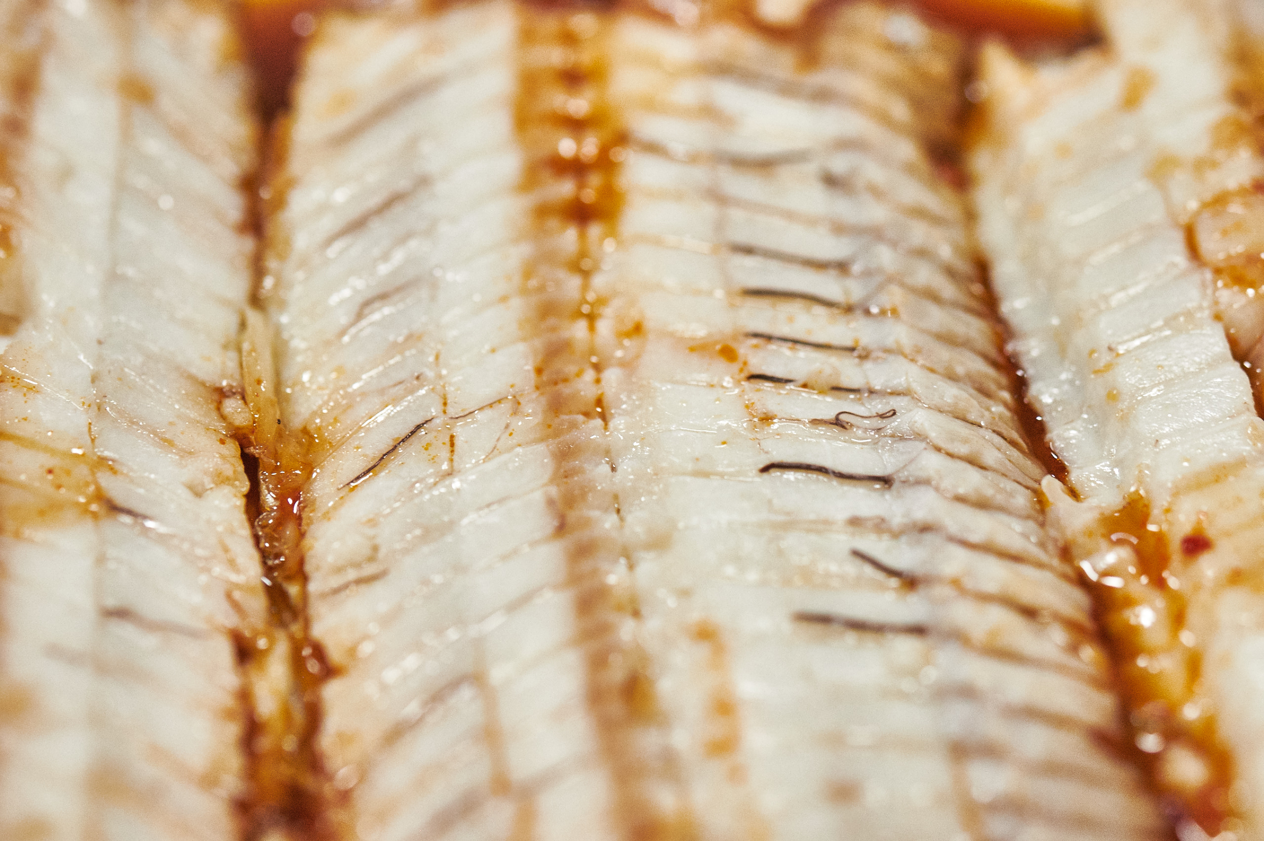갈치토막을 앞접시에 덜고 가시를 발랐는데 워낙 큼지막해서 편안하게 분리가 되더라구요 ㅎㅎ