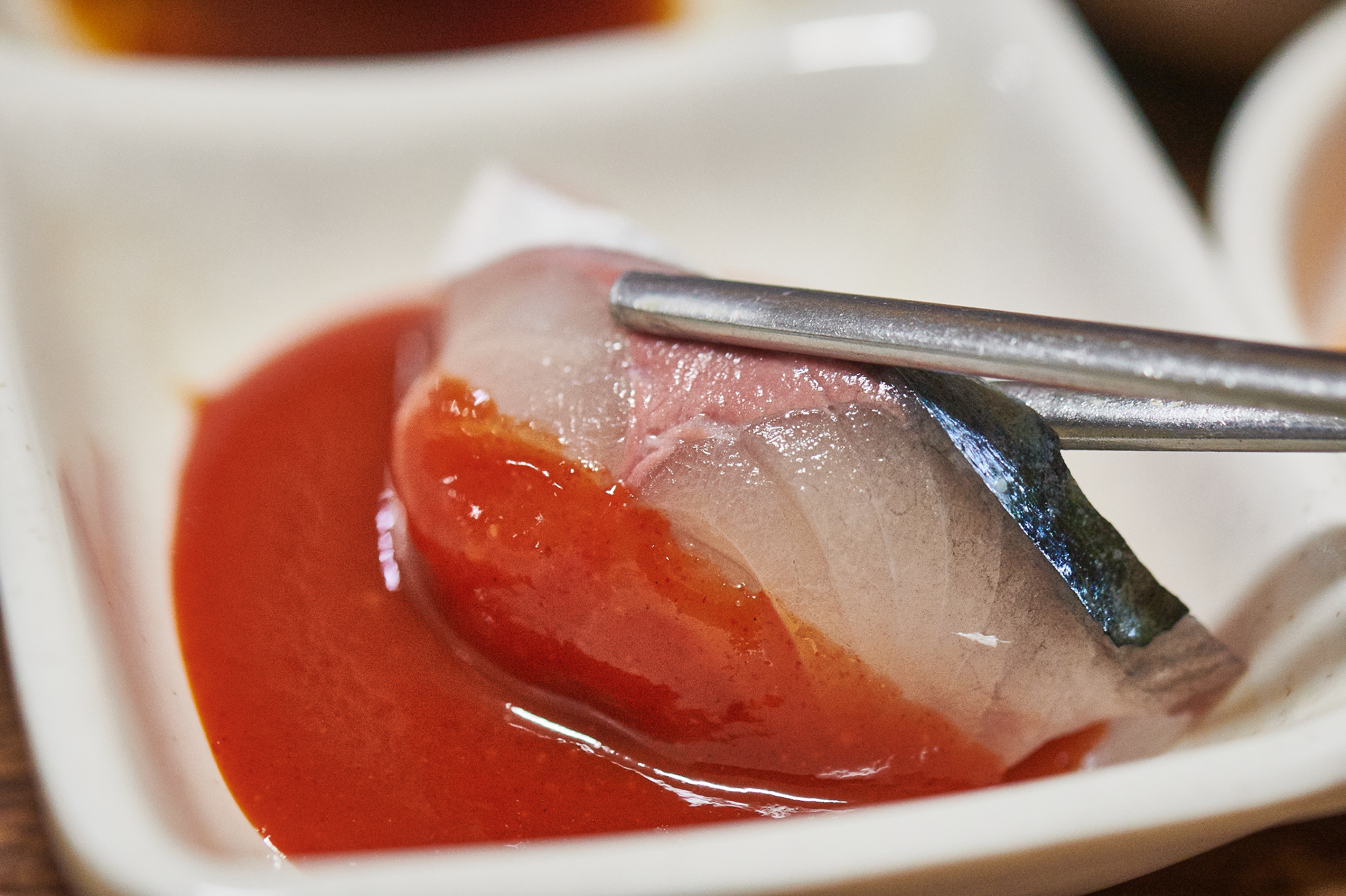 고등어회는 개인적으로 워낙 좋아하기 때문에 보시는 방법과 같이 비슷하게 드시는데 소스의 맛과 횟감의 맛에 따라 퀄리티의 차이를 확실하게 느낄수 있어요.