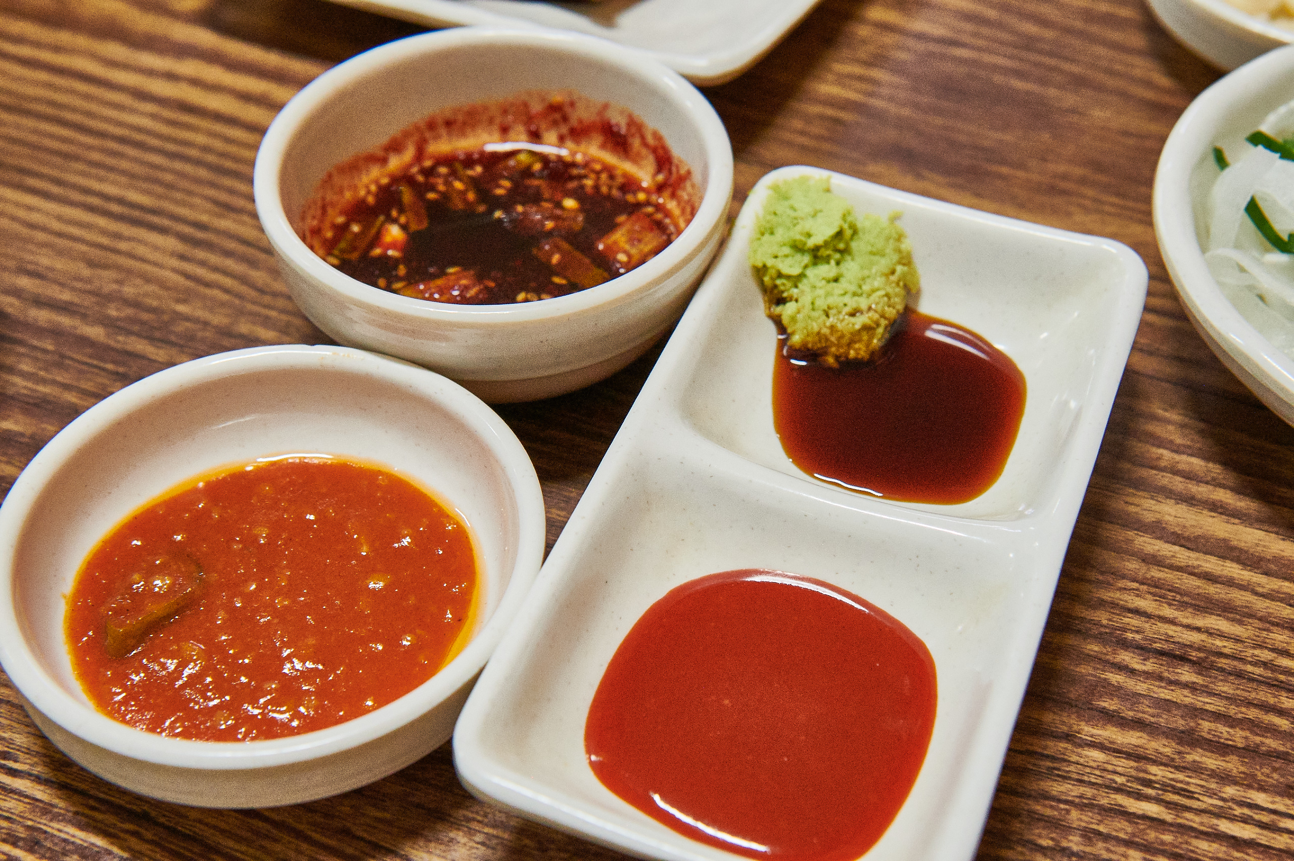 기본적으로 어디서나 드실 수 있는 초장, 고추냉이간장, 참기름이 들어간 쌈장이 나오고 특제소스까지 1인당 셋팅이 들어가요.